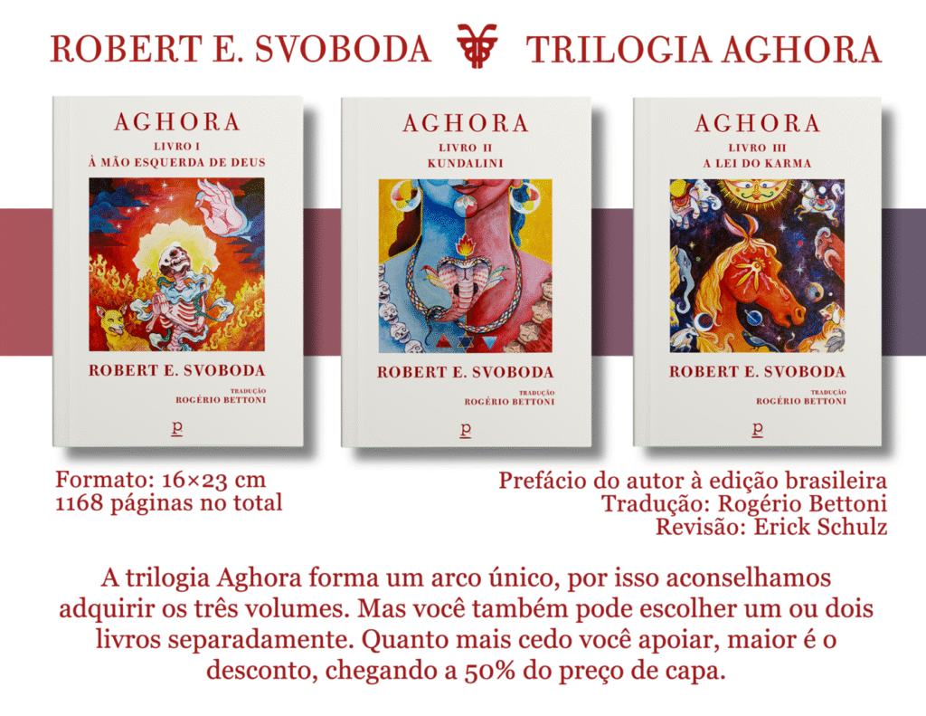 A trilogia Aghora busca exatamente o contrário dessa visão extrema e estereotipada: ao longo de mais de 1.000 páginas, Robert E. Svoboda nos mostra a lógica disciplinar, ontológica e ética que sustenta a tradição.